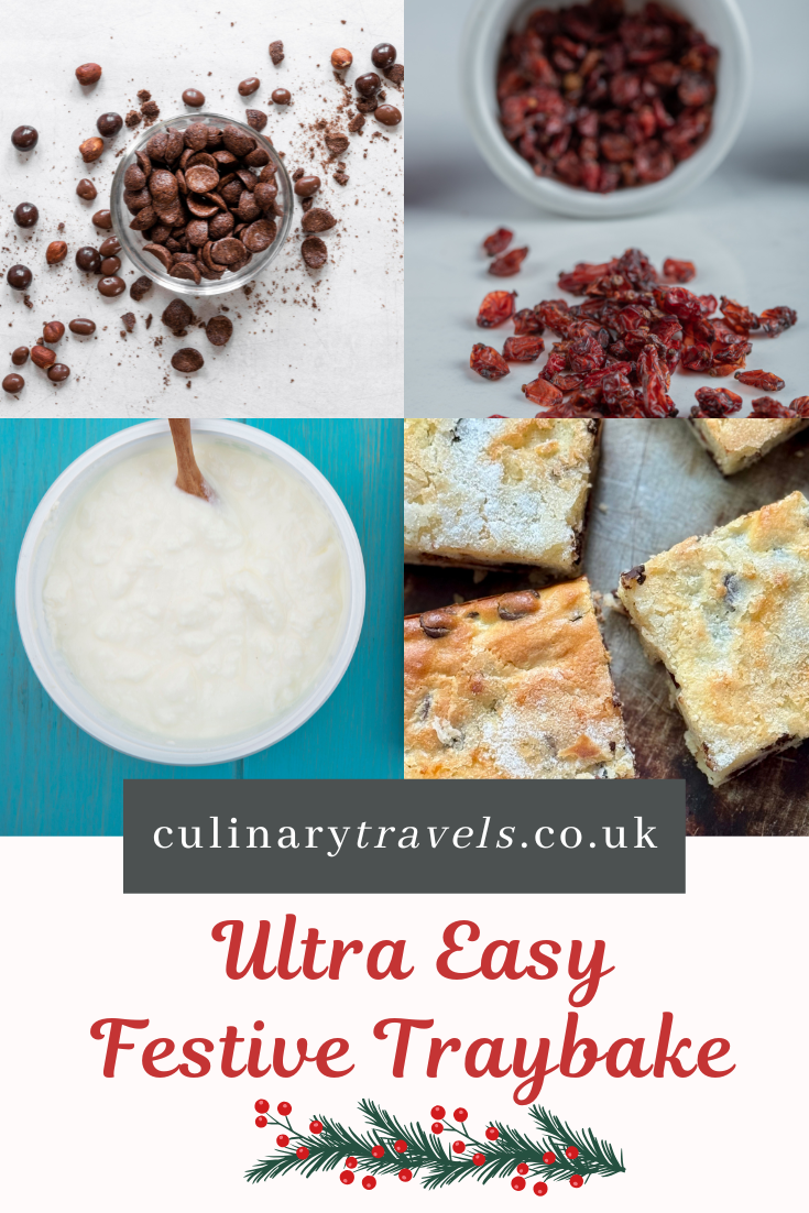 Sour Cream Dark Chocolate & Cranberry Traybake Recipe. Fully Festive & Family Friendly