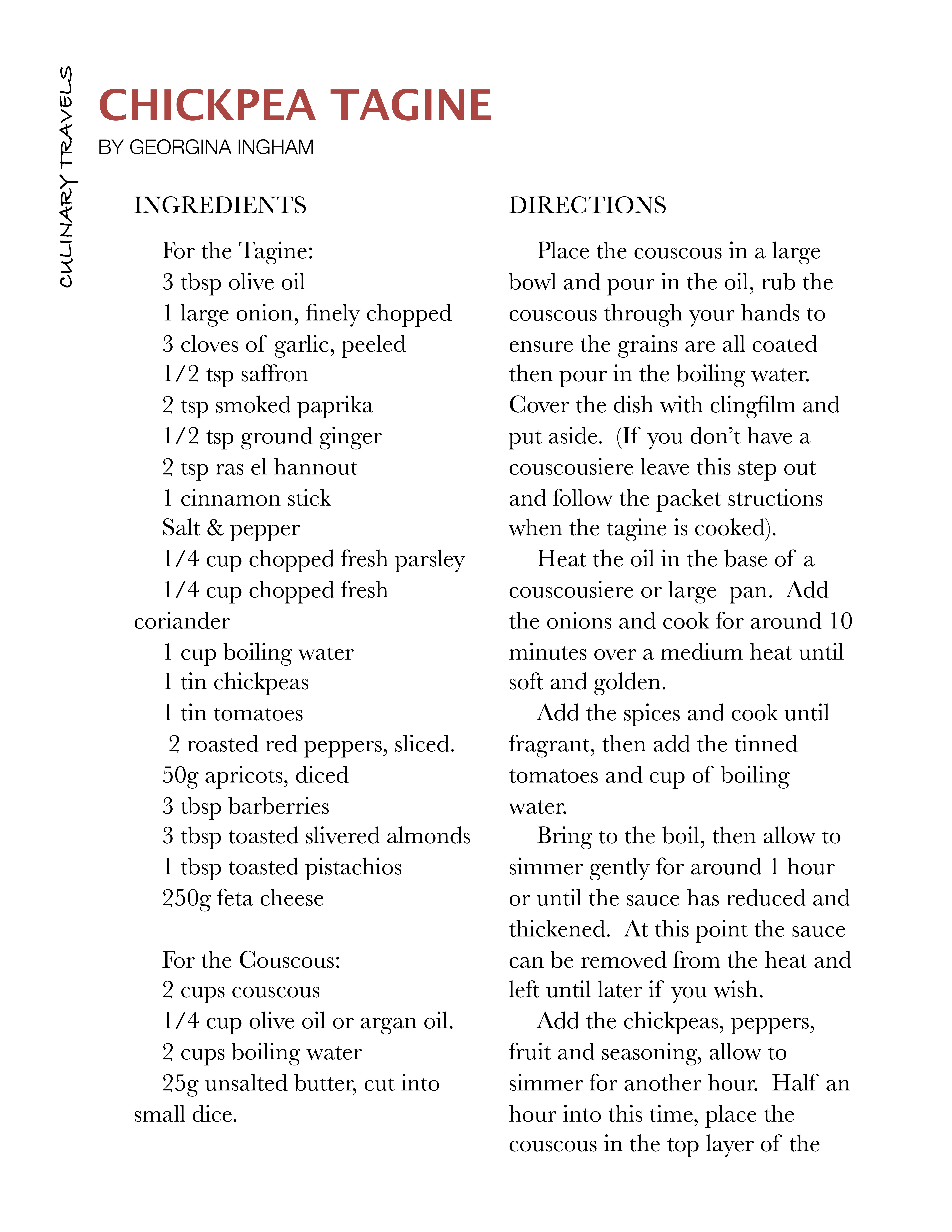 I decided upon Chickpea Tagine with Feta, which I served with couscous.