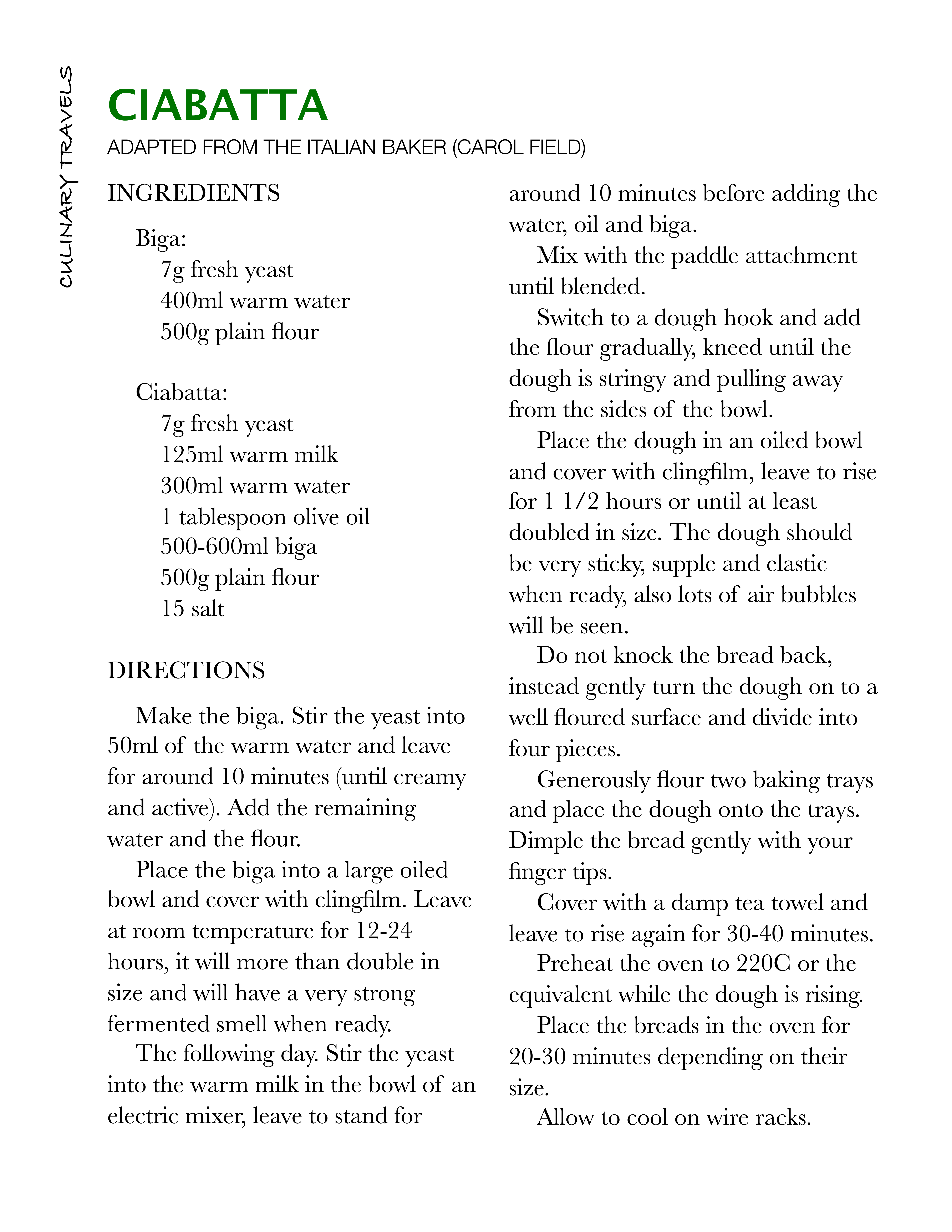The ciabatta recipe comes from The Italian Baker (Carol Field), although I’ve adapted the recipe to use metric measurements. This is one of my favourite books at the moment, I love her writing style and the style of the book too, very enjoyable to sit and read with a good cup of coffee.