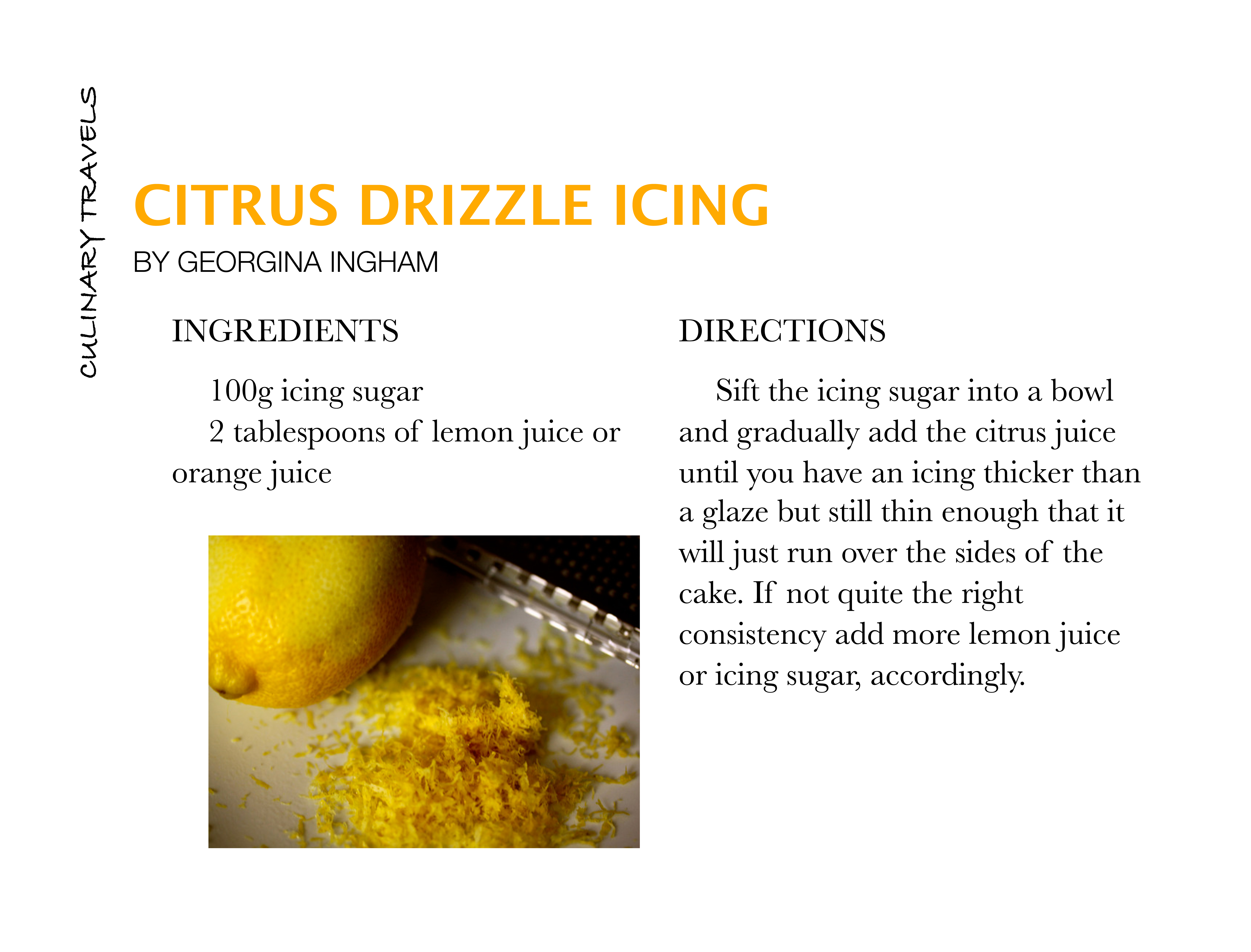 Citrus frosting provides a tangy sweetness that is incredibly pleasing to the palate and turns what is in reality a pretty ordinary cake into something that little bit extra special.